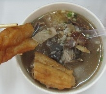 粥1.5元起,然后可以自己选择加油条,鸭肉,鱼肉,海蛎等各种东东,很不错