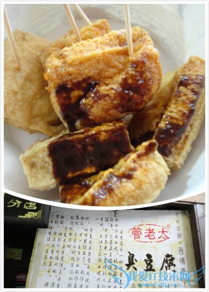 “管老太臭豆腐”:去之前在网上查资料说管老太臭豆腐很有名,一定要尝一下。一到西塘,从弄堂口拐出来就看到管老太臭豆腐,马上就买了,味道还不错,挺开心的。结果后来发现西塘所有的臭豆腐都叫“管老太”,这让我情何以堪呀。