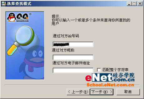 设置完毕后,我们就可以单击QQ的“查找”按钮,选择“自定义查找”功能查找对方的QQ号了。如图2所示。