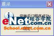 如果你输入有误,可以点击“否”返回进行修改,否则直接点击“是”即可弹出“安装后门程序成功”的提示,如图9: