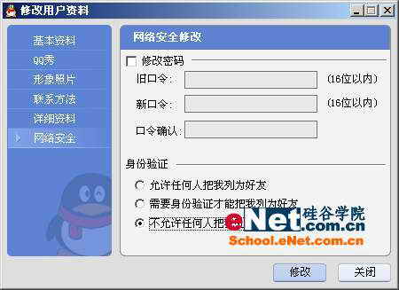修改OICQ设置:执行QQ主菜单的“个人设定”命令,选择“不允许任何人把我列为好友”。但是这样一来也会给你带来一些麻烦,你的朋友也不能添加你为好友了。如图4所示