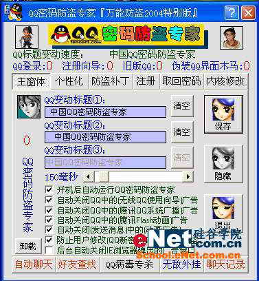 提示:该软件是经常到网吧上QQ的用户的致命杀手,但是该软件不能截获以注册向导登陆的QQ帐号和密码,所以要想躲过QQ枪手的“暗枪”,请注意使用登陆向导登陆QQ.