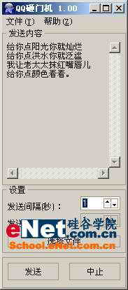 在“发送内容”列表框中是请求通过验证的内容,每次发送一行。在“发送内容”列表框中单击鼠标可继续添加内容。通过“设置“栏设置发送请求的次数和间隔的时间。