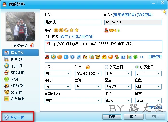 首先,点击QQ面板上的“我的头像”进入“我的资料”;