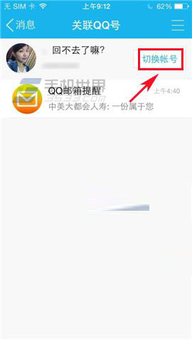 4)在关联QQ号那便可看到你刚才关联的号码,点击【切换账号】,即可切换。(如下图)