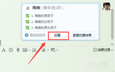 3、在窗口中,可以看到一个投票的按钮。点击按钮。