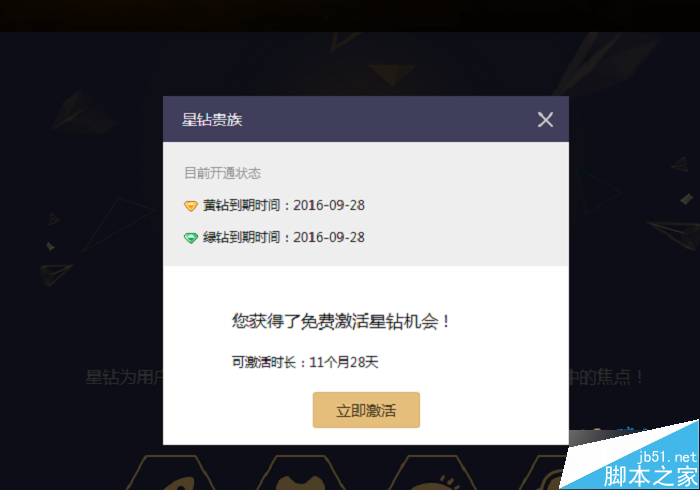 2.在没有登录的星钻活动页面点击点亮星钻,会提示让你激活星钻,点击激活。