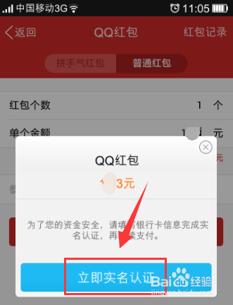 4、不过,在发红包之前我们要做的就是进行实名认证,如下图所示