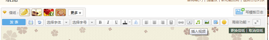 我们打开日志界面,然后就可以看到里面有插入视频这样的选项,然后选择,添加自己想要添加的视频。