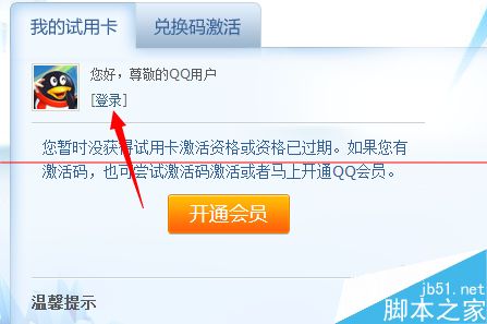 4、再次回到原来的QQ会员使用卡页面,点击试用卡旁边的激活码,进行切换