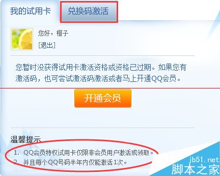 提示:激活码半年只能激活使用一次,而且仅限于非会员的QQ用户,如果半年内已经激活或者已经是QQ会员,那么该激活码对自己也没什么用处,可以考虑转送于好友