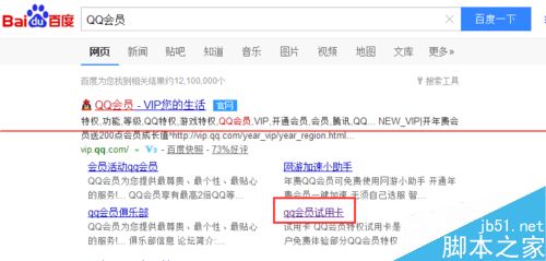 1、在电脑上打开任意一个浏览器,然后在百度上搜索QQ会员,在搜索结果中找到QQ会员官方网,一般在下方可以看到QQ会员试用卡,点击打开