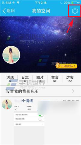 答:你要下载手机QQ空间,然后点进【更多】,再点左上角的【设置】,然后再点【权限隐私】 >>详细