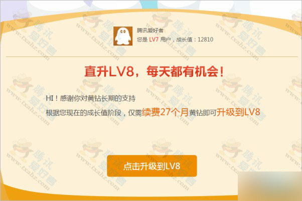 黄钻LV7级用户,根据现在的成长值计算出直升LV8需要升级多少个月。