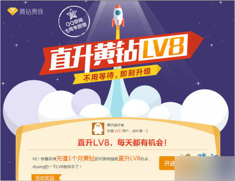 QQ空间十周年回馈 腾讯官方直升黄钻LV8活动 QQ黄钻直升LV8级