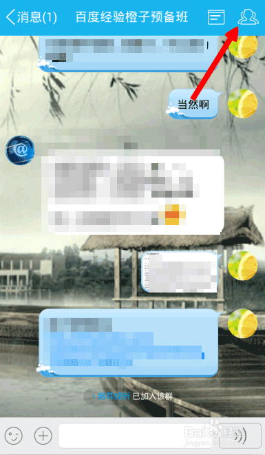 2、进入群聊天窗口,点击右上方的群资料按钮