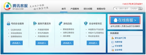 1、进入腾讯客服官网kf.qq.com,点击进入号码安全服务专区;