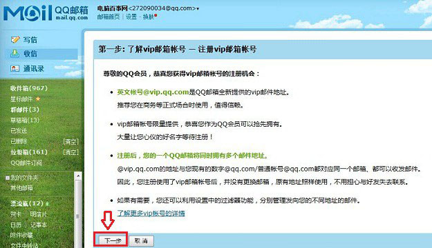 连接QQ VIP邮箱注册须知后,点击【下一步】继续操作,如下图所示。