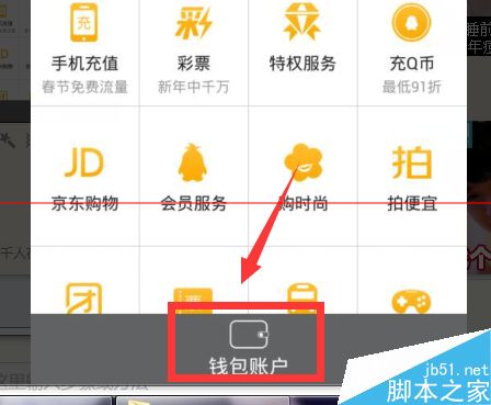 3、选择“钱包账户”选项。
