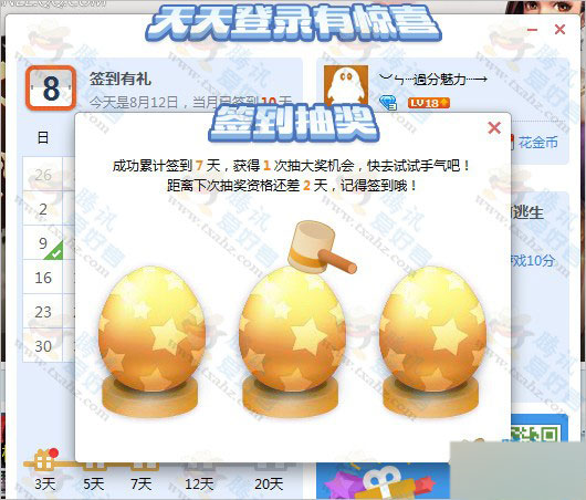 提示:如果你今天开始签到(今天12日),到月底真好也能够20天领取蓝钻礼包砸蛋的机会哦!