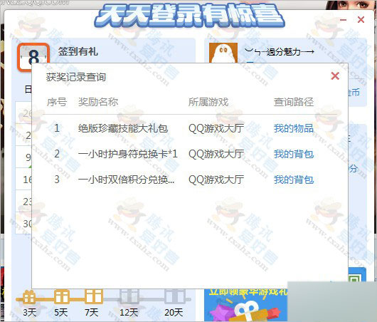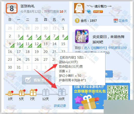 2、签到20天的礼包中含有QQ蓝钻30天。