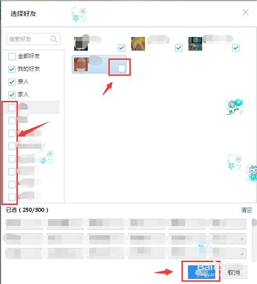 在选择指定好友评论的设置中,可以根据分组来选择评论的权限,在左侧没有勾上的分组好友,都是不能在空间进行评论的,就算是在选上的好友分组里,也可以在单独的好友列表中,把勾去掉,这样这个好友也是不能在你空间有评论权限的,设置完成之后,再点击“确定”按钮。(如下图)