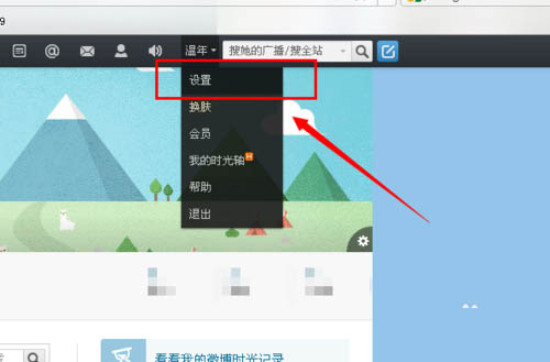第二,登录自己的腾讯微博,在个人主页下拉菜单中选择【设置】。