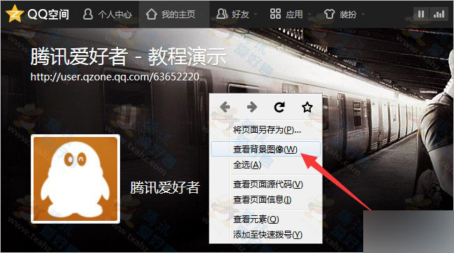 3、找到后点击图片预览装扮 - 在背景图片上点击右键“查看背景图像”。如下图: