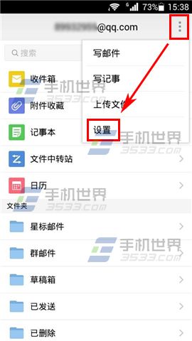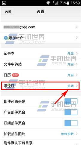 1)打开手机QQ邮箱,点击右上角【...】,在弹出菜单选择【设置】,然后点击【漂流瓶】。(如下图)