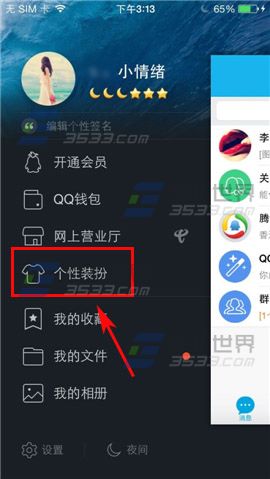 1)首先打开手机QQ,在右上方点击【账号头像】,点击【个性装扮】。(如下图)