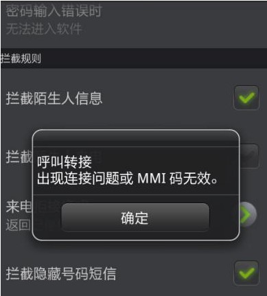 当我们在设置“呼叫转移”操作时,出现“mmi码无效”提示时,建议我们与相关电信运营商联系,为本机开通呼叫转移业务。已确定开通了呼叫转移业务的,建议将“呼叫转移业务”关闭。