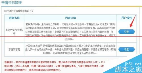4、我开通了两个亲情号套餐,长途亲情包和家庭网套餐,点击设置。