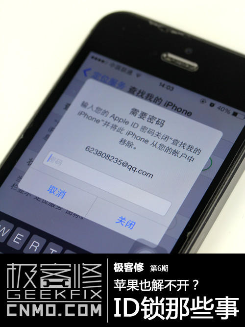 当然,这只是ID锁引发众多麻烦中的一个,有些用户则是因为自己的疏忽或者大意才将手机锁住,也有一些意外遭难的兄弟,忘了密码、当初随便注册的账号突然之间就让手机变砖头,现在只能看着空悲叹或者早早当做砖机处理掉。最近,ID锁的问题开始逐渐爆发,成为手机维修市场的热门话题。那么,这个iPhone的ID锁究竟是什么?它因何而产生?能不能破解?哪些手机可以解?方法是怎样的?我们平时使用又应该注意些什么?今天的这期《极客修》就来给大家解开上述疑惑,为了能让各位对维修过程有更直观的了解,我们这次依然邀请到了极客数码维修工程师阿良提供全程技术支持和指导。(注意:维修过程需要极强的动手能力和手工技艺,如果没有相关经验的话,最好请专业人员协助操作)