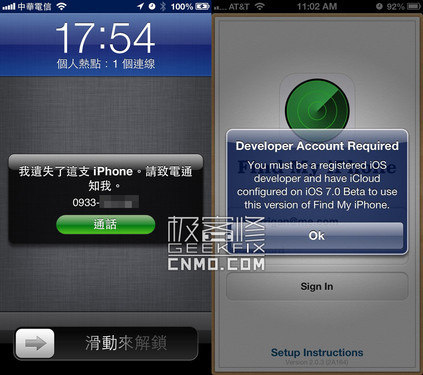 1、一些用户在iOS 6.1.3的时候打开了“查找我的iPhone”功能,之后通过单刷固件的方式升级了iOS 7 beta版或者正式版,升级前没有关闭该功能。当手机启动进入激活界面时,提示需要Apple ID和密码,而这正是激活锁。