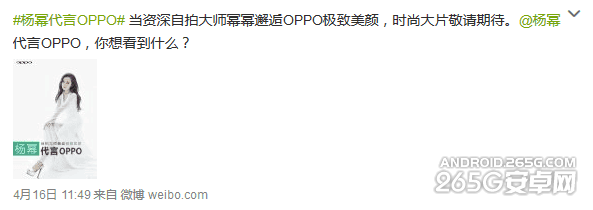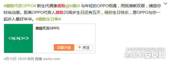 其实早在去年OPPO N3发布的时候,李易峰就曾经手持N3发布了多篇微博。如今在加上杨幂和鹿晗,如果你同时是三位明星的粉丝,又是OPPO手机的用户,那可是有福了。