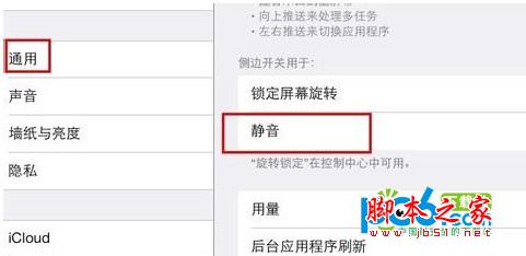 打开设备中的“设置”界面,然后定位到“通用”界面,如图所示。在通用界面的“侧边开关用于”下点击选择“静音”即可。