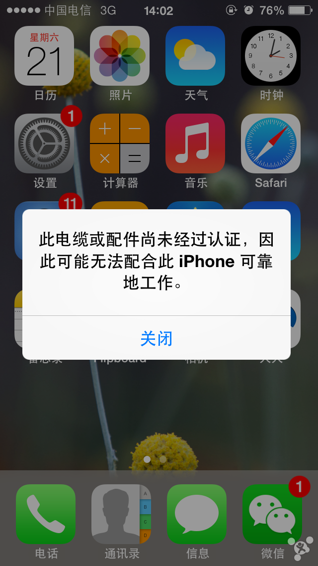 最后说一下,5代的原装配件可以继续在5S上用,但是如果是组装的配件,呵呵,苹果升级加密IC验证,学长的盗版lightning线手机不让充电了,所以想节约开支真是很难啊。就和去年这个时候一样,手里只有lightning一线一充,原装的lightning价格高昂,而且买不到,最后一只等有同学去香港旅游后才给学长带两条回来,没用多久盗版的数据线已经泛滥了。