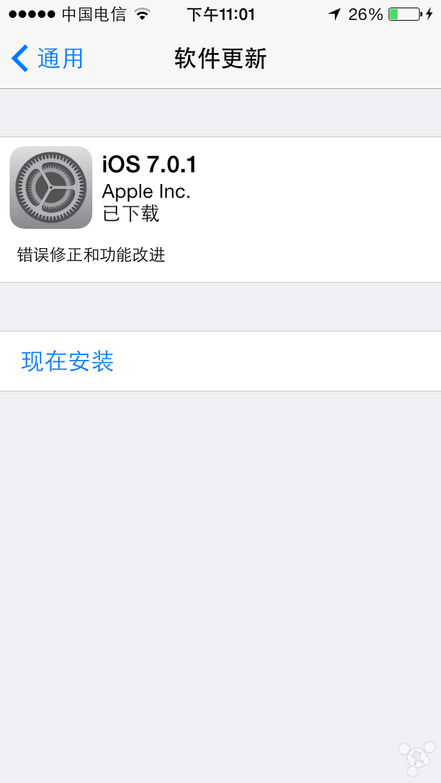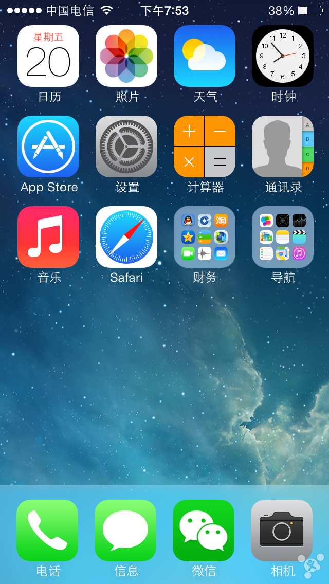 实际上在一天的使用中,只想说IOS7真的很难用,界面丑BUG多,就在20号当天苹果就给5S带来了一次7.0.1的小升级