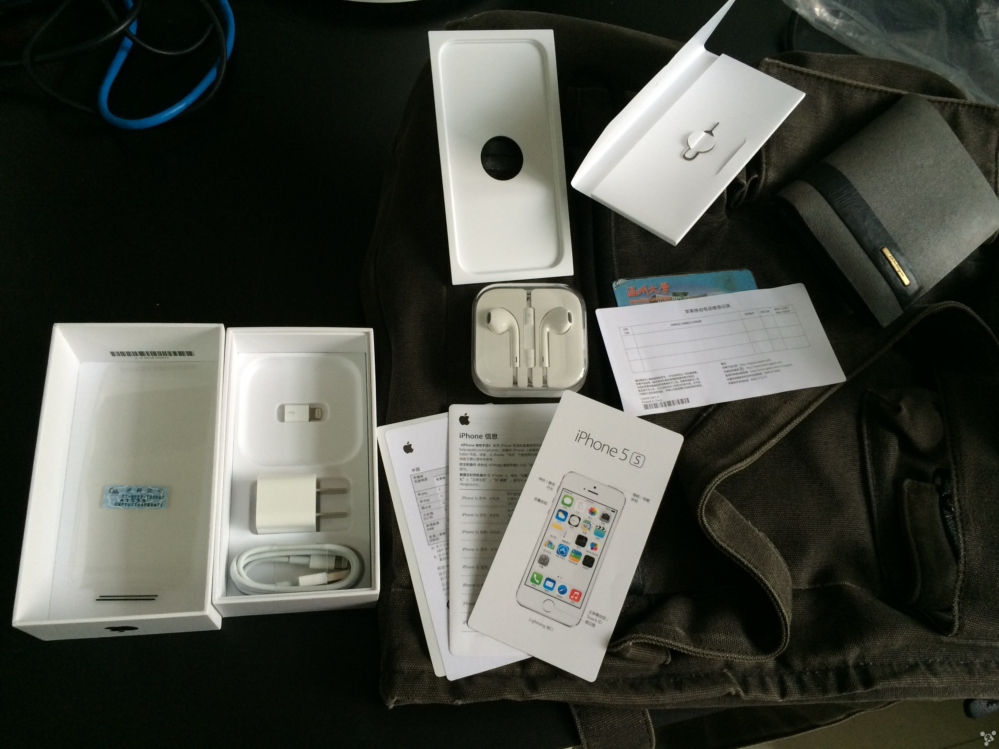 5S国行电信版,行货配件方面和5代一样,耳机依然是富有中国特色,除港版外国际版的制式不可以用,包括你想把耳机插电脑上用也不可以,比水货多了一个microUSB转lightning的转接头,苹果挺乐意送的,希望广大安卓用户可以转身投奔苹果阵营。