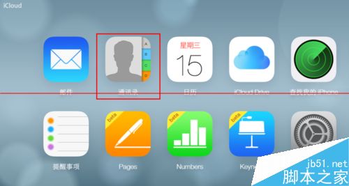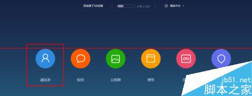 2、小米 云服务地址为:http://i.mi.com 用小米账号登陆云服务进入到云服务主页,打开通讯录,如图所示。