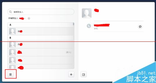 3、当打开通讯录的时候,我们会看到小米云服务的通讯录界面,如图;这时我们会在左下角看到一个菜单选项,点击这个选项