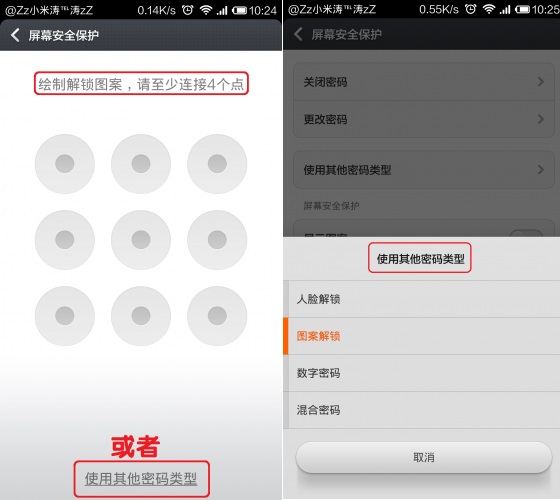 设置小米3屏幕密码