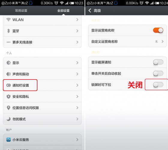 关闭小米3锁屏下拉菜单