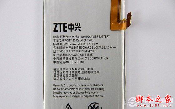 中兴青漾2内置2300mAh容量电池,下图为拆解下来的中兴青漾2电池特写。