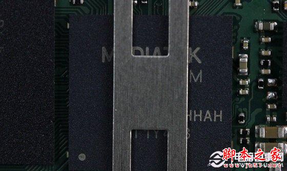 虽然被金属屏蔽罩挡住了,但从体积上以及能看到的字母来看,这枚芯片就是我们今天的主角联发科MT6592真八核处理器芯片。
