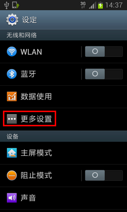 1.在待机页面下,依次进入【应用程序】-【设定】-【更多设置】-【移动网络】-【接入点名称】-按左下方的【菜单】键-【新APN】。