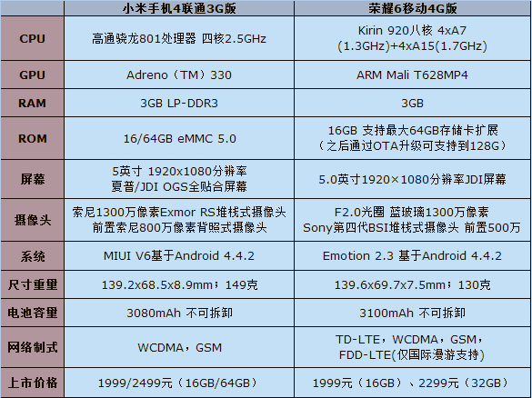 相关问题:小米4和华为荣耀6哪一个值得买,介绍一下