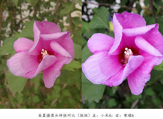样片上看,两家手机厂商对于色彩的有所不同,华为荣耀6属于偏冷色系,色彩更鲜艳一点;小米4属于偏暖,色彩更自然。这两种优化,需要使用者自己去选择,若是喜欢拍摄花花草草,荣耀6的优势明显,若是近景写实,小米4更符合需求。