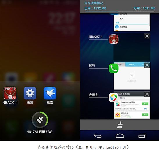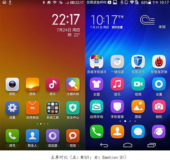 通过以上对比,可以发现Emotion UI系统除了在功能上有所扩展外,并没有在设计上给人以吸引力。