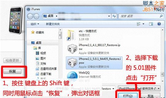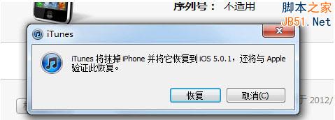 完成上述步骤,就进入了DFU模式使用 iTunes 导入固件进行系统恢复(升级)(小编的之前是5.0.1没有越狱,后来刷机只能刷5.1的)